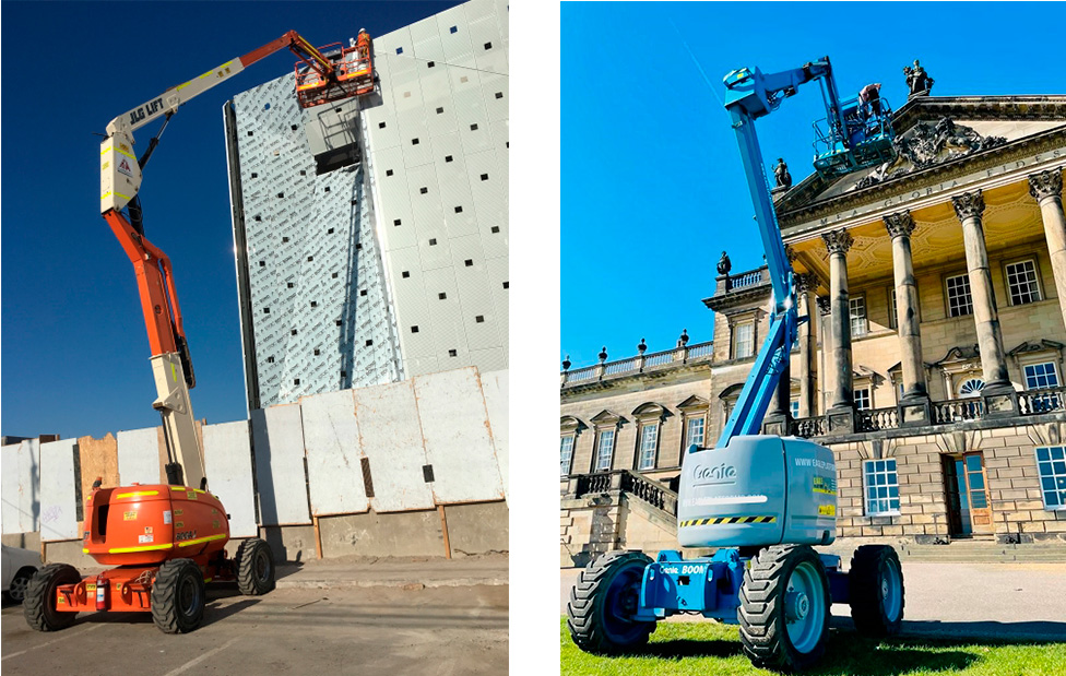 Este tipo de plataforma es una herramienta idónea para realizar trabajos en exteriores donde no encontrarnos con obstáculos o barreras. según las condiciones de trabajo se puede optar por un brazo telescópico o articulado, ya que nos dan un alcance horizontal. Son equipos que se caracterizan por trabajar en terrenos agrestes. Califican para trabajar en obras, césped de terreno firme.